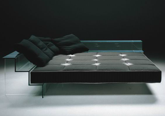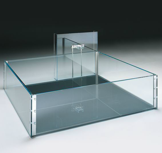 The use of glass sheets in a structural way excludes the need of profiles or other supporting elements. This way we eliminate all what may distract the eye from a contemplation of pure shapes and extreme elegance, born to surprise and to spread aesthetical pleasure.